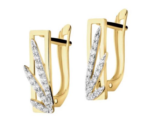 Złote kolczyki z cyrkoniami – K-934.01. Żółte złoto rodowane