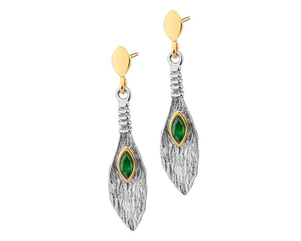 Kolczyki srebrne z cyrkoniami – AP538-0593. Srebro oksydowane, srebro pozłacane