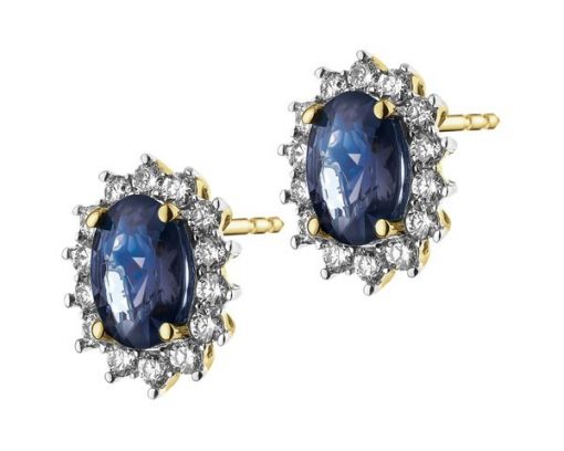 Kolczyki z żółtego złota z brylantami i szafirami – próba 585