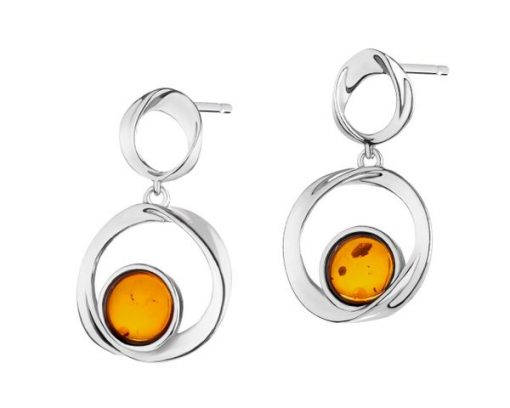 Kolczyki srebrne z bursztynem – AP535-5284. Srebro rodowane