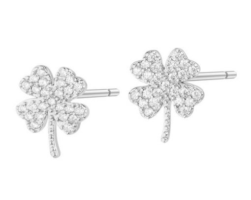 Kolczyki srebrne z cyrkoniami – koniczyny