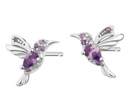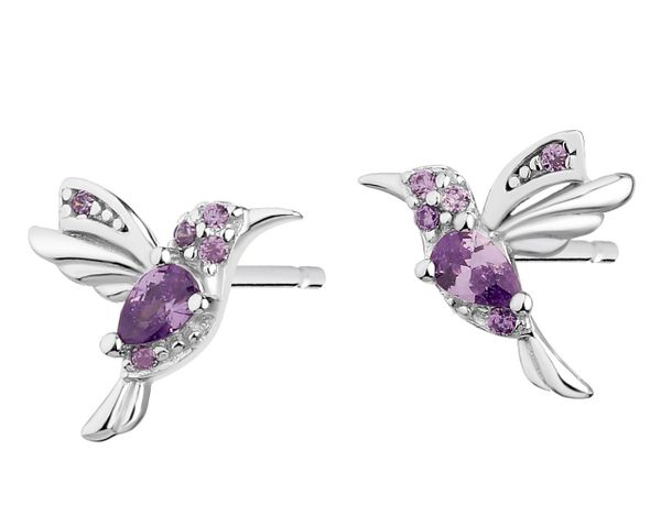 Kolczyki srebrne z cyrkoniami – kolibry – AP535-4200. Srebro rodowane