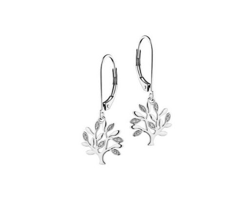 Kolczyki z białego złota z diamentami – drzewka – 0,02 ct – próba 585