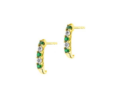 Kolczyki z żółtego złota z diamentami i szmaragdami – próba 375