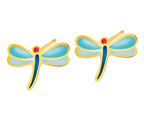 Złote kolczyki z emalią – ważki – AP537-4502. Żółte złoto