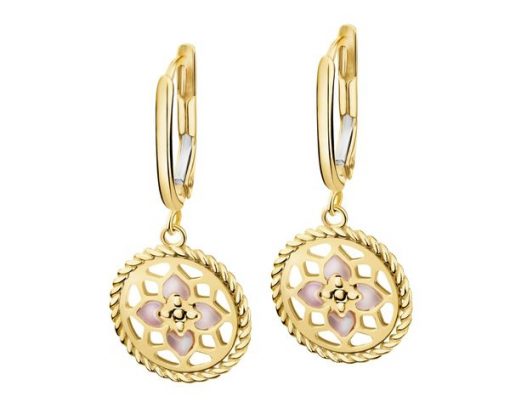 Złote kolczyki z masą perłową – kwiaty – AP537-9415. Żółte złoto