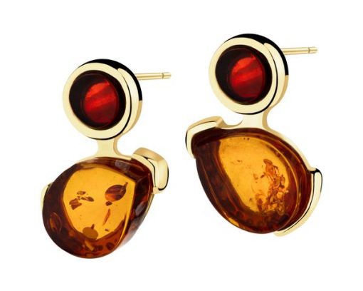 Kolczyki srebrne z bursztynem – AP538-7395. Srebro pozłacane