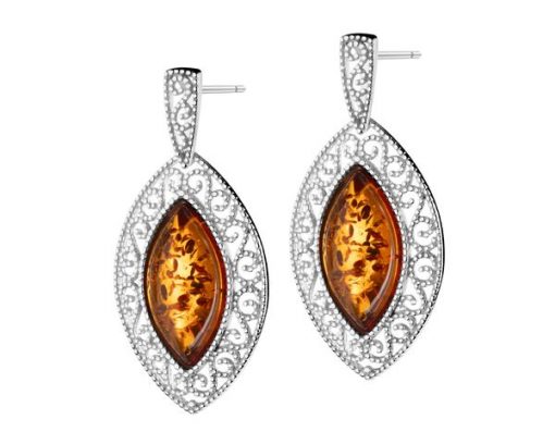 Kolczyki srebrne z bursztynem – AP539-6990. Srebro rodowane