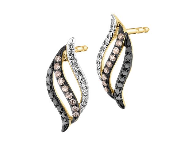 Kolczyki z żółtego złota z diamentami – 0,17 ct – próba 585 – 214.180. Żółte złoto rodowane