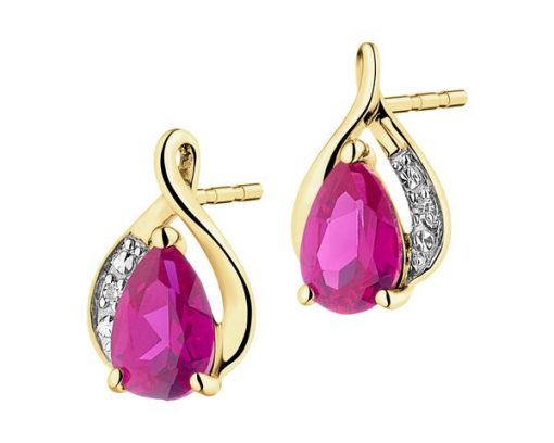 Kolczyki z żółtego złota z diamentami i rubinami syntetycznymi – próba 375