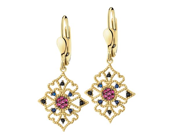 Złote kolczyki z cyrkoniami – rozety – AP539-3966. Żółte złoto, czarny rod
