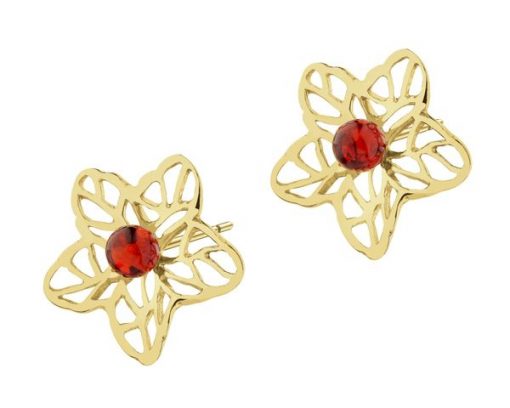 Kolczyki srebrne z bursztynem – kwiaty – AP539-9500. Srebro pozłacane