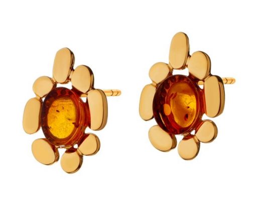 Kolczyki srebrne z bursztynem – AP536-9498. Srebro pozłacane