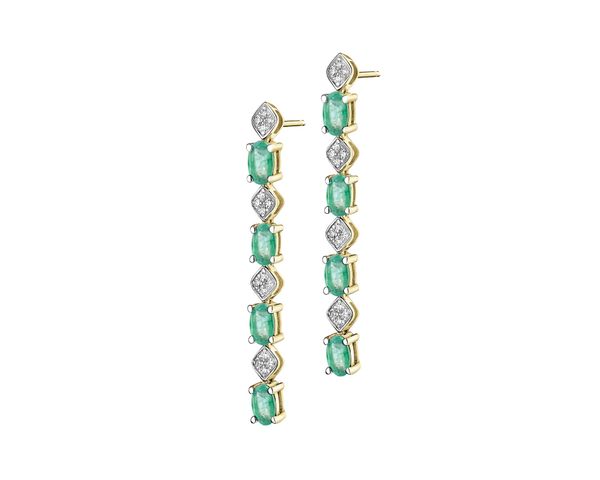 Kolczyki z żółtego złota z diamentami i szmaragdami – próba 585 – 103.752. Żółte złoto rodowane