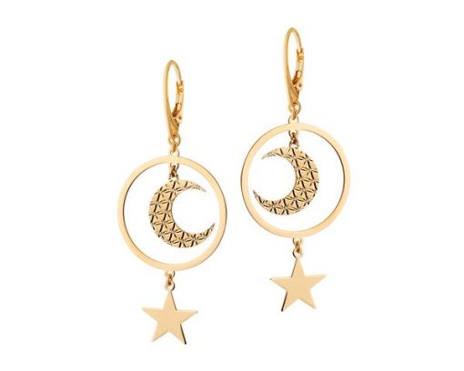 Kolczyki srebrne – Księżyce, gwiazdy, koła – AP536-8684. Srebro pozłacane