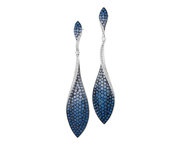 Kolczyki z białego złota z brylantami i szafirami – próba 585 – 188.100. Białe złoto rodowane