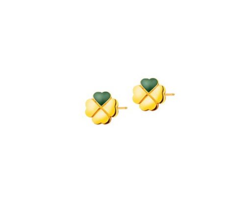 Złote kolczyki z emalią – koniczyny