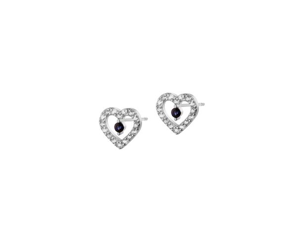 Złote kolczyki z szafirami syntetycznymi i cyrkoniami – serca – K-816.03. Białe złoto rodowane