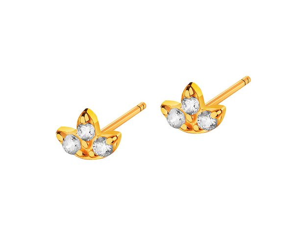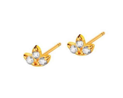 Złote kolczyki z cyrkonimi- kwiaty lotosu – K-885.01. Żółte złoto