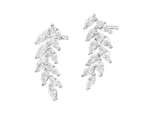 Kolczyki srebrne z cyrkoniami – liście – AP535-4697. Srebro rodowane