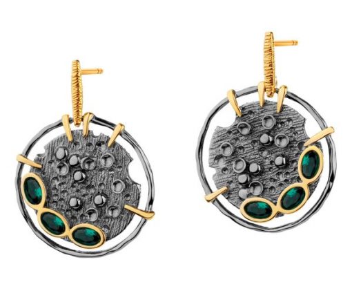 Kolczyki srebrne z cyrkoniami – AP538-1185. Srebro czarny rod, srebro pozłacane