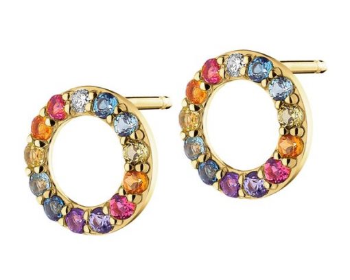 Kolczyki z żółtego złota z brylantami, kamieniami szlachetnymi i ozdobnymi – koła – próba 375