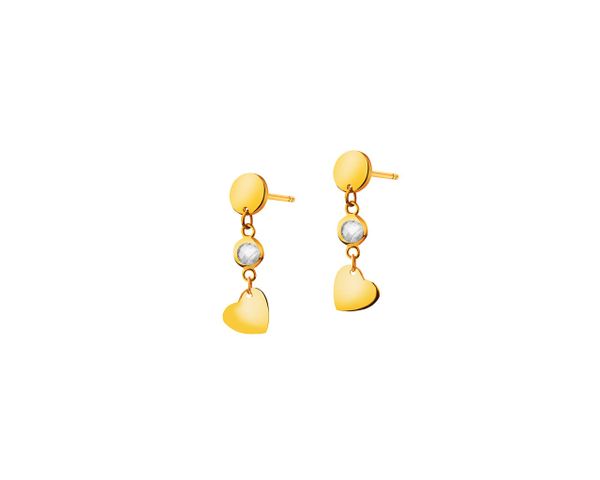 Złote kolczyki z cyrkoniami – serca – AP532-7371. Żółte złoto