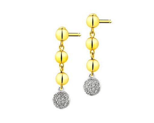Kolczyki z żółtego złota z diamentami – kulki – 0,09 ct – próba 375 – 103.776. Żółte złoto rodowane