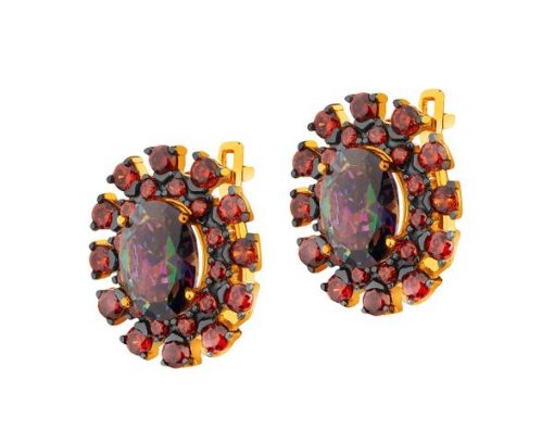 Złote kolczyki z cyrkoniami – AP536-2496. Żółte złoto, czarny rod