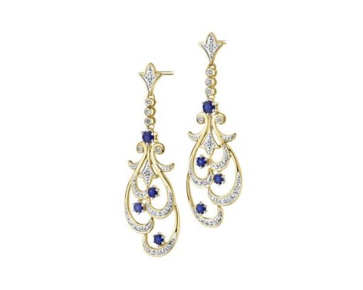 Kolczyki z żółtego złota z brylantami i szafirami – próba 585 – 220.193. Żółte złoto rodowane