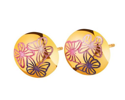 Złote kolczyki z emalią – motyle – AP536-5679. Żółte złoto