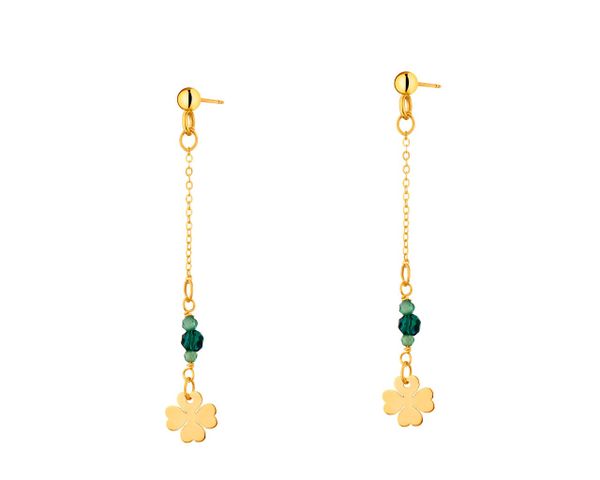 Złote kolczyki ze szkłem – koniczyny – AP531-3955. Żółte złoto