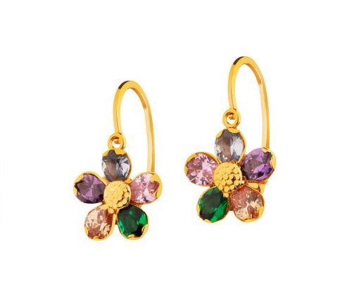 Złote kolczyki z cyrkoniami – kwiaty – AP536-2077. Żółte złoto