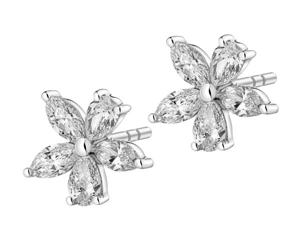 Kolczyki z białego złota z diamentami – kwiaty – 0,94 ct – próba 585 – 223.107. Białe złoto rodowane