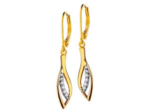 Złote kolczyki z cyrkoniami – K-426.01. Żółte złoto rodowane