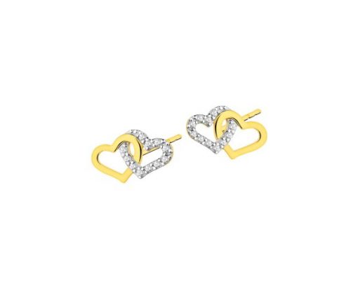 Złote kolczyki z cyrkoniami – serca – K-731.01. Żółte złoto rodowane