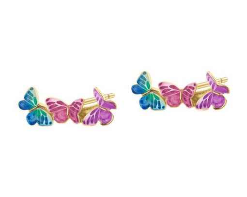 Złote kolczyki z emalią – motyle