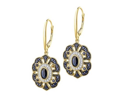 Kolczyki z żółtego złota z diamentami i szafirami – próba 585 – 203.188. Żółte złoto rodowane