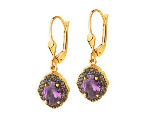 Złote kolczyki z cyrkoniami – AP537-2411. Żółte złoto, czarny rod