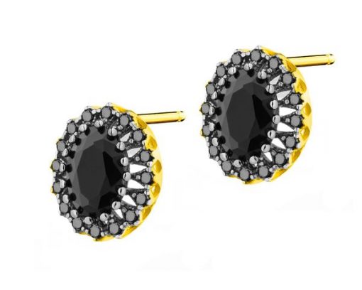 Złote kolczyki z cyrkoniami – AP535-9406. Żółte złoto, czarny rod