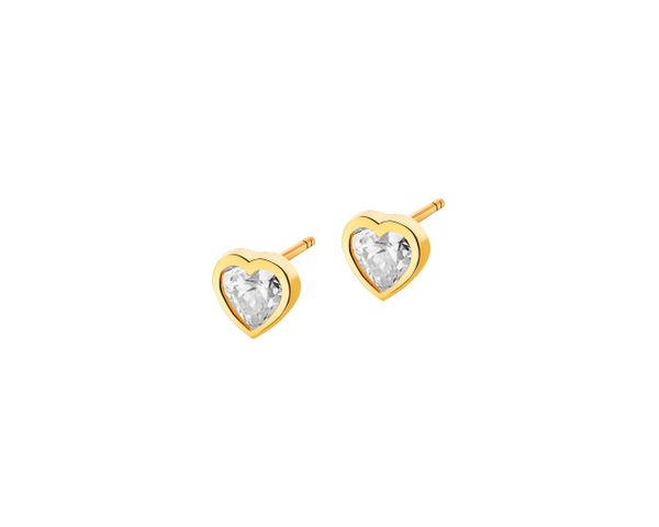Złote kolczyki z cyrkoniami – serca – K-583.01. Żółte złoto