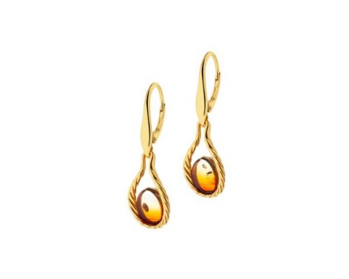 Kolczyki srebrne z bursztynem – AP534-0229. Srebro pozłacane