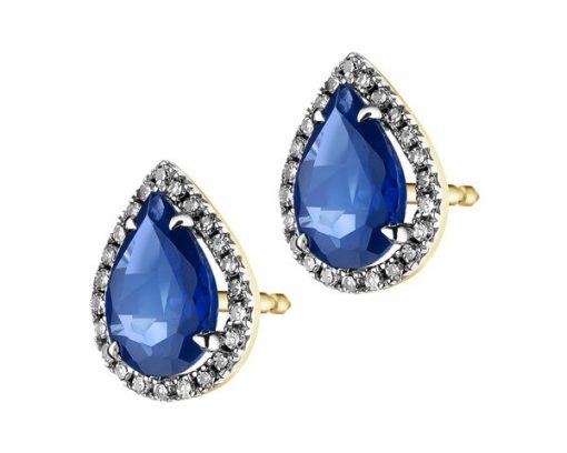 Kolczyki z żółtego złota z diamentami i szafirami syntetycznymi – próba 375