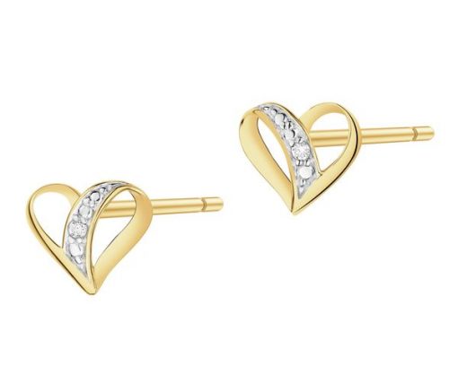 Kolczyki z żółtego złota z brylantami – serca – 0,008 ct – próba 375