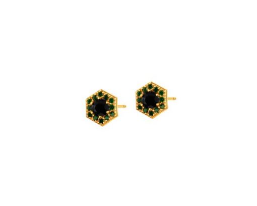 Złote kolczyki z cyrkoniami i szmaragdami syntetycznymi