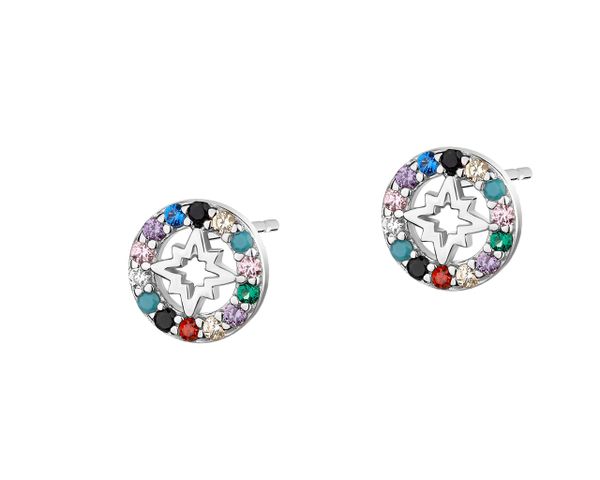 Kolczyki srebrne z cyrkoniami – koła, gwiazdy – AP531-8008. Srebro rodowane