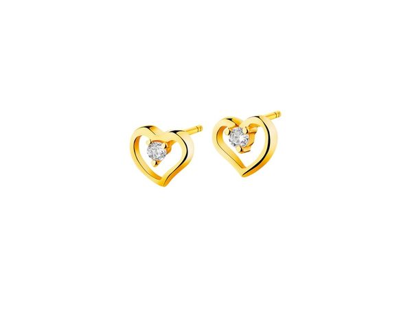 Złote kolczyki z cyrkoniami – serca – K-477.01. Żółte złoto