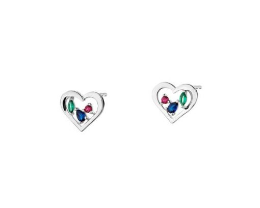 Kolczyki srebrne z cyrkoniami – serca – AP531-5560. Srebro rodowane