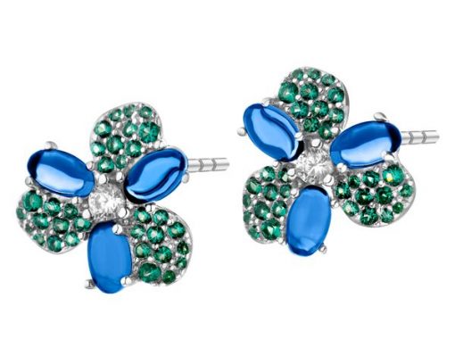 Kolczyki srebrne z cyrkoniami i szlifowanym szkłem – kwiaty – AP537-5523. Srebro rodowane