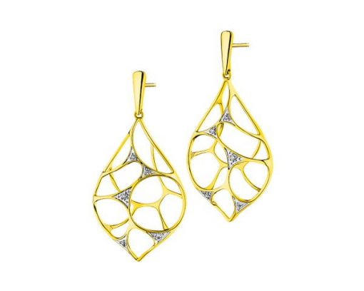 Kolczyki z żółtego złota z brylantami – 0,09 ct – próba 585 – 220.267. Żółte złoto rodowane